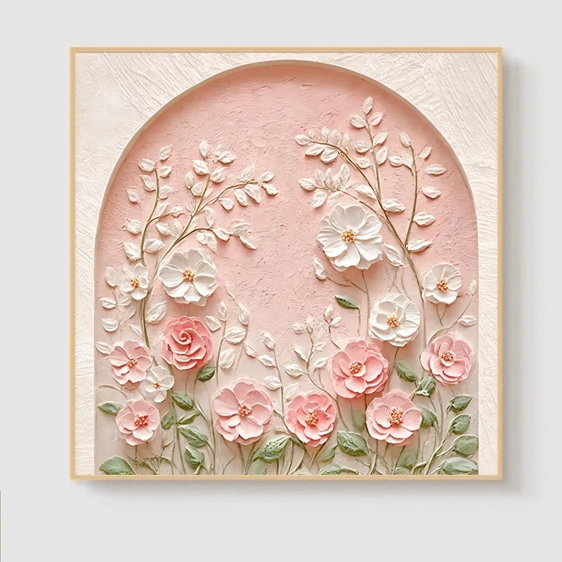 Elevate your entire room with this oversized 3D floral relief wall art—a showstopping statement piece that transforms blank walls into a soft, romantic focal point. Crafted with textured blush and ivory sculpted flowers (paired with delicate green foliage), its raised, tactile design adds depth and artistry to any space: perfect for anchoring a living room accent wall, framing a bedroom headboard, or elevating a spacious entryway. Designed as a large-scale art piece (ideal for open-concept interiors), it blends bohemian charm with refined elegance—lightweight for easy hanging, yet substantial enough to command attention. A timeless addition to modern, feminine, or rustic decor schemes, this sculpted flower art turns your space into a curated, gallery-worthy retreat.