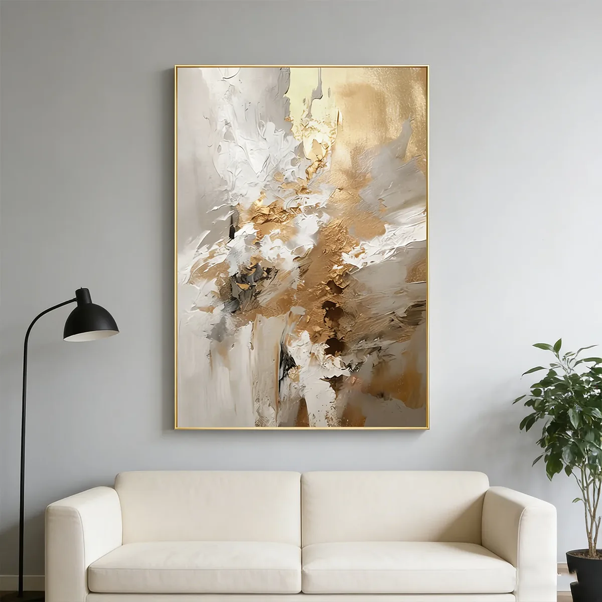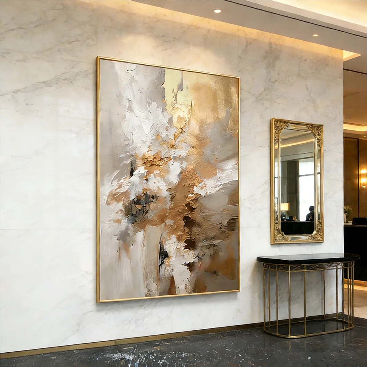 Gold Leaf Texture Decorative Art with Aluminum Frame - Waterproof, Moisture-Resistant & Durable High-Quality Art Frame