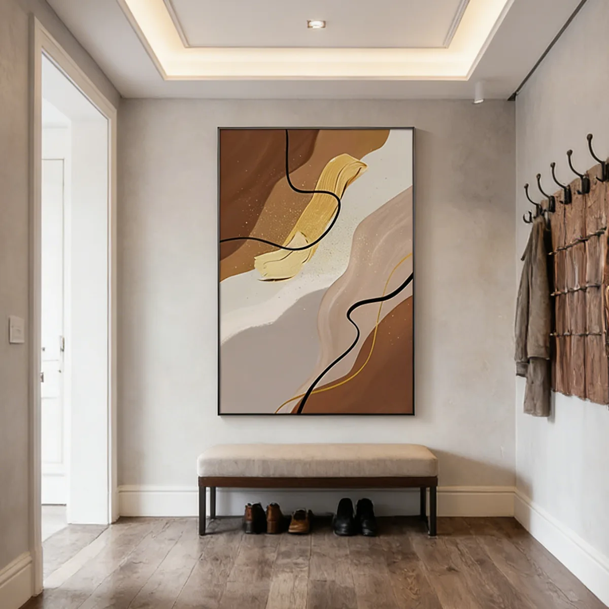 Elevate your large US home’s decor with this oversized neutral abstract canvas art. Modern tan & beige statement wall piece perfect for luxury living rooms—chic, on-trend, and made to impress. Shop now!